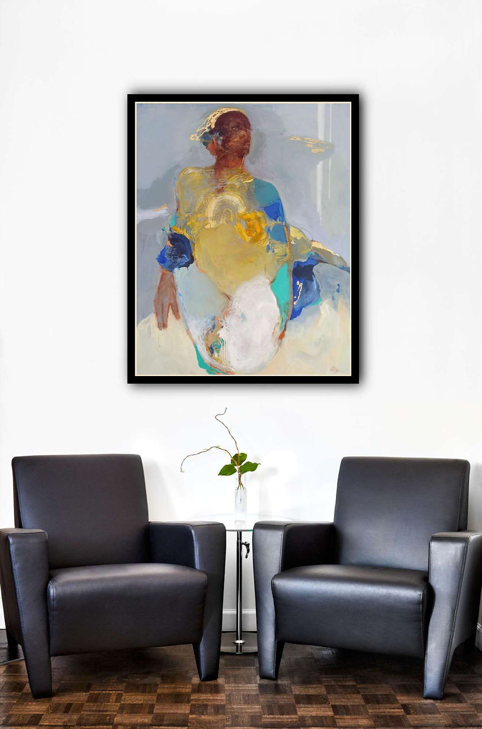 Figurative abstraction has been a continual undercurrent of my portfolio ever since I was a student. My Masters degree project was a series of huge abstract figures and through them I discovered that I was able to express so much of my inner life that I found almost impossible to articulate in any other way. My figures are based on memories and sensations and figurative work has always been a medium through which I can find a profound connection to myself and my emotions. I remember people as energies and, for me, those translate as colours. I use different colour combinations create visual impacts and surprises, analogous to events in life; they don't all have to be high-contrast fireworks and be exciting to have meaning, some are definitely more muted and monochromatic. Whilst we see each other as individuals, we all experience similar things; loneliness and happiness, creativity and stagnation are all sensations felt by most of humanity, so I'm fascinated in the use of colour to communicate and share these feelings that are triggered by events. There's a deep satisfaction in creating art - it's a cross-section of what's going on in my mind. I don't think of individual figurative paintings as things that are "complete", they're more like snapshots of a continual, dynamic evolution of the self; some bits are highly detailed and focussed whilst others are blurred, some details are further away, some things are highlighted like flashes of inspired awareness, other aspects are ambiguous or ignored completely.
